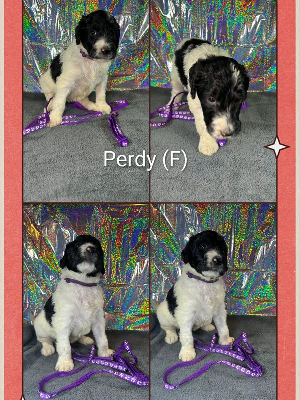 Perdy is a parti coat. She is very sweet and loving. She also has a sassy side and can be dramatic.